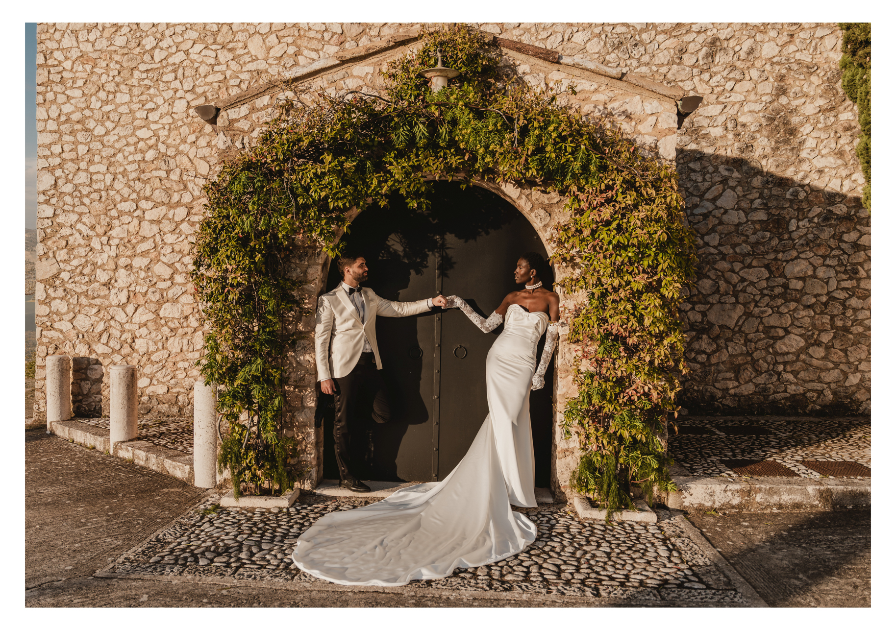 Una location senza tempo: Baglio Ciambre Scegliere il Baglio Ciambre come cornice per il proprio matrimonio significa abbracciare la storia. Questa antica struttura, con la sua corte suggestiva e gli scorci mozzafiato sulla campagna siciliana, ha offerto a Harry e Olivia un’atmosfera intima ed esclusiva. Gli sposi hanno desiderato un evento che unisse l’eleganza internazionale al fascino rustico-chic tipico dei bagli siciliani.